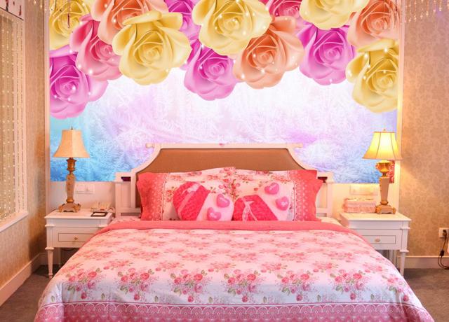 暖色的色调代表的是温馨与暖意融融,对于要让两个人感情升温最适合不过了,适合的颜色包括大红色,朱红色等等,搭配暖黄色,金黄色则能营造一种喜气的氛围,但光是喜气,却还不够温馨,要达到温馨浪漫的效果,可以采用一些粉红色的装饰,比如墙壁上装饰粉红色的玫瑰爱心,床具采用粉红色等等。