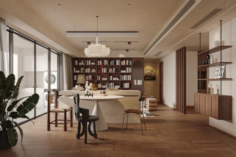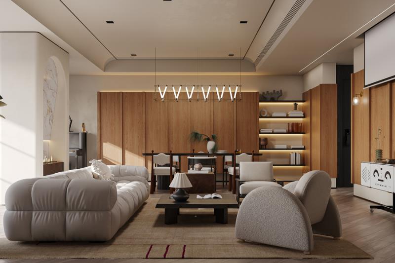 主卧延续了整体的自然调性,木饰面背景墙搭配柔和的床品,连收纳都做了隐形设计,让空间更整洁。施工时我们对木作的拼接缝隙、墙面的乳胶漆工艺反复打磨,最终让设计的细节完美落地。在昆明,这样的家,既装得下一家人的日常,也留得住独处的惬意。