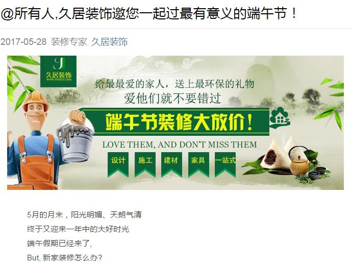 昆明久居装饰祝装修的新老客户端午节快乐!