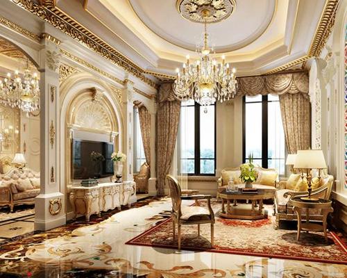 1、选择一些欧式的多层次的大型吊灯来装饰,从而弥补客厅的单调氛围。