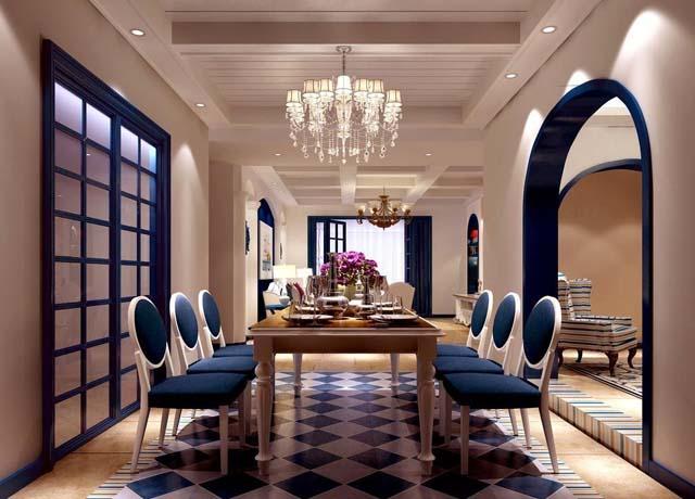 暖色的室内装修,配上清爽的地中海蓝色元素家居,成功地达到了冷暖结合的效果,让房间整体的风格得到一种升华,暖色的渲染配上了深蓝的家居,仿若城市中刮过一阵清凉的自然之风,这样的搭配令人感到舒心惬意,在居住的时候,也可以感到自然与城市融为一体。