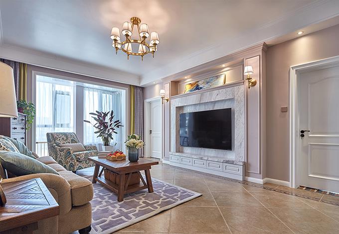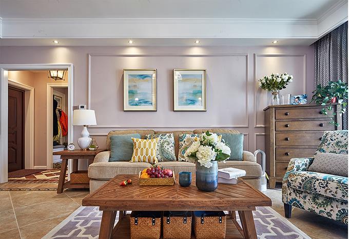 事实上,对于女孩子来说,所有华丽的辞藻、千奇百怪的礼物都敌不过一个温馨的港湾。想象一下,当她推开门看到这样一个客厅是怎样的惊喜?浪漫的美式装修一下子满足了她对生活的所有想象。温暖的色调,白吊顶简约而纯粹,吊灯造型感十足。电视背景墙采用了美式最喜欢的砖墙,富有立体感,粉色墙壁温馨而浪漫。