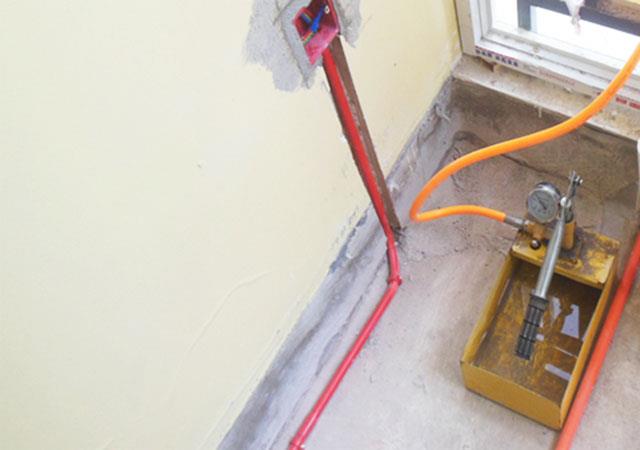 (6)水管安装完成了,千万不要忘记打压测试,打压测试就是为了检测所安装的水管有没有滲水或漏水现象,只有经过打压测试,才能放心封槽。封槽,墙槽使用1:3水泥砂浆填补密实。