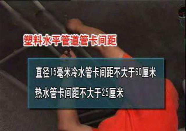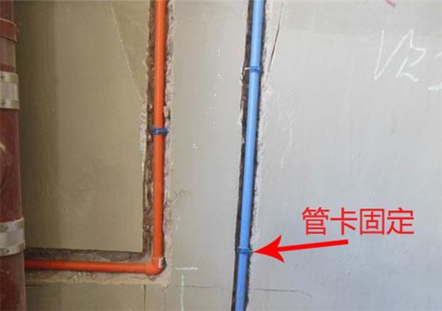 (4)水管铺设完成后,封槽前,要用管卡固定,冷水管卡间距不大于60厘米,热水管卡间距不大于25厘米。