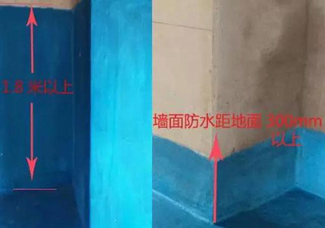 当然卫生间、阳台防水层不得低于180cm,如果有安装浴缸,与浴缸相邻的墙面防水高度应比浴缸高出30cm.