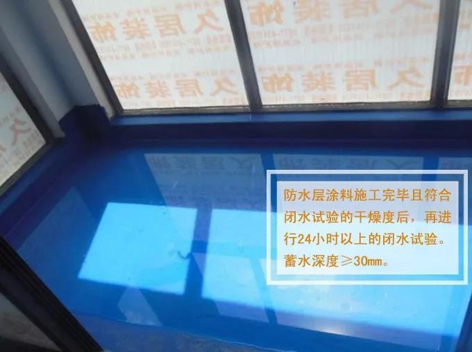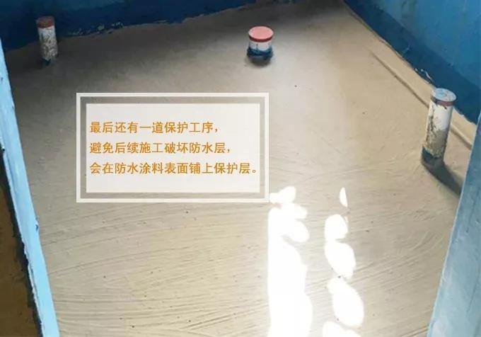 (6)防水验收和保护层,检查各个区域防水高度是否符合标准,涂层表面是否有无起泡、平整、开裂,墙地面接缝是否均匀涂刷。保护层要完全覆盖防水层,无遗漏,与基层结合牢固,无裂纹,无气泡,无脱落现象。