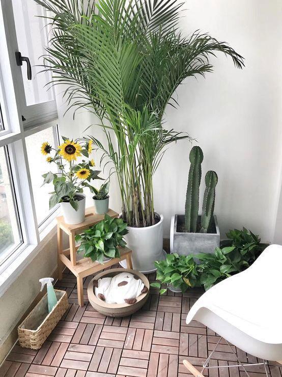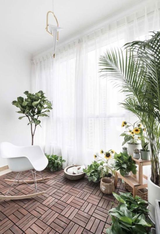 阳台做了大大的落地窗,铺了防腐木地板,在配上喜爱的绿植,仿佛就是一个郁郁葱葱的小森林,放一把摇椅,在阳台发呆,时光慢慢的!