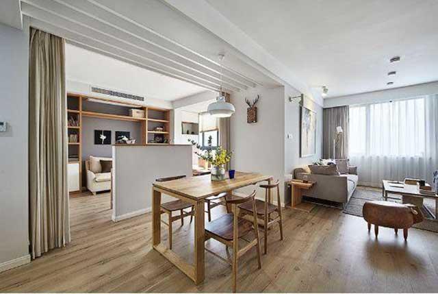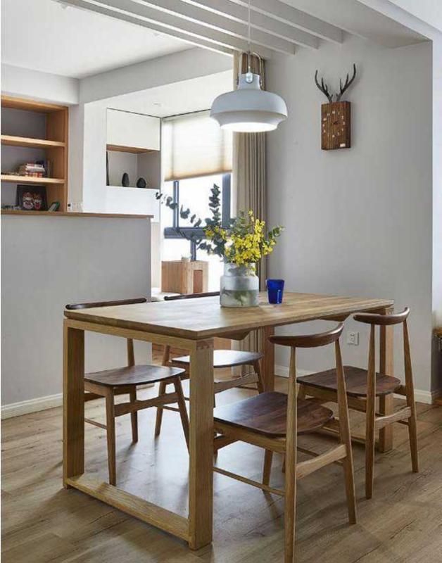 换个角度看,原木的餐桌椅简单实用,而且还相当的健康环保。家里的墙面装饰都比较的素雅,还是以简单舒适居家为主,特别棒。
