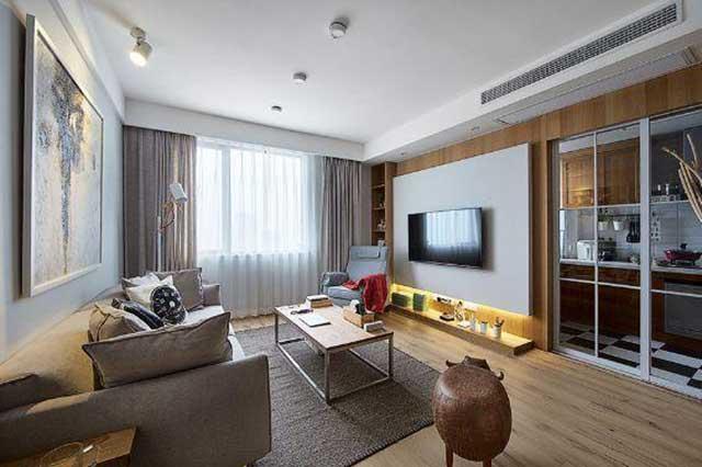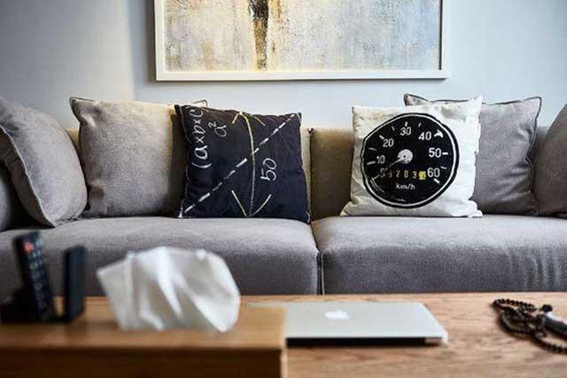 灰色布艺沙发,简单舒适,慵懒的躺在沙发上看看电视,玩玩手机也是惬意的生活。