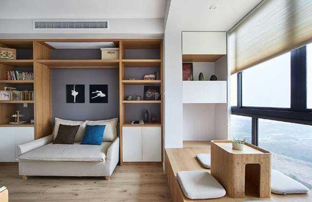 飘窗设计,上边柜子设计很得很特别,满足收纳需求的同时也很美观。喜欢在飘窗上品品茶,聊聊天亦或者看看窗外的风景,享受下大自然带来的美好。