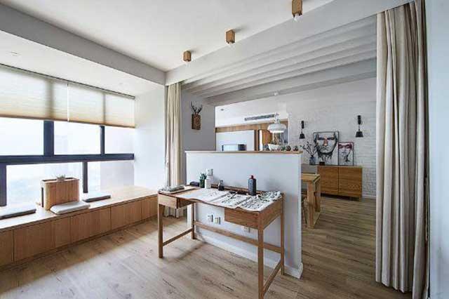 餐厅和书房在空间上是连着的,这样的设计很有情调,在书房工作时,抬头可以看到在餐厅做饭的她,很是烂漫。