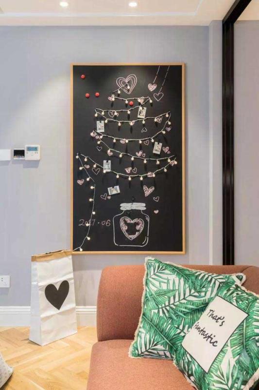 走廊上有一块小黑板,用小彩灯记录着旅游的照片,生活的点点滴滴,烂漫温馨。