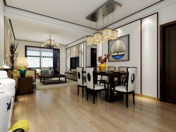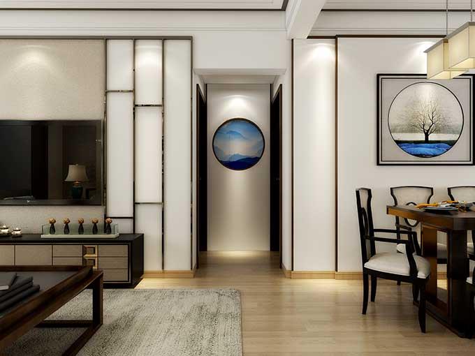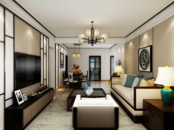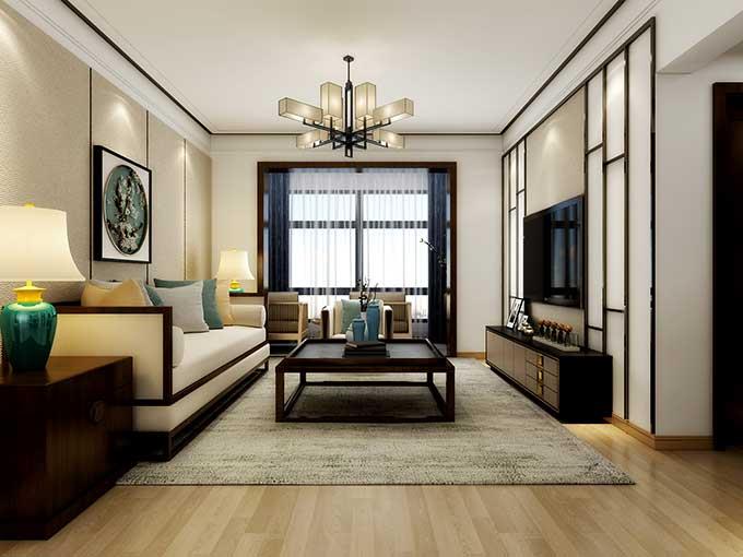 在中式装修风格里,原木的家具、方形的桌子都是比较常见的。而在这套新中式中,设计师将线条运用到了极致,随处可见的线条。吊灯棱角分明、线条丰富;窗户也是多窗框设计,茶几四平八稳。沙发背景墙的装饰,精致的方圆突出了中式装修的特点。