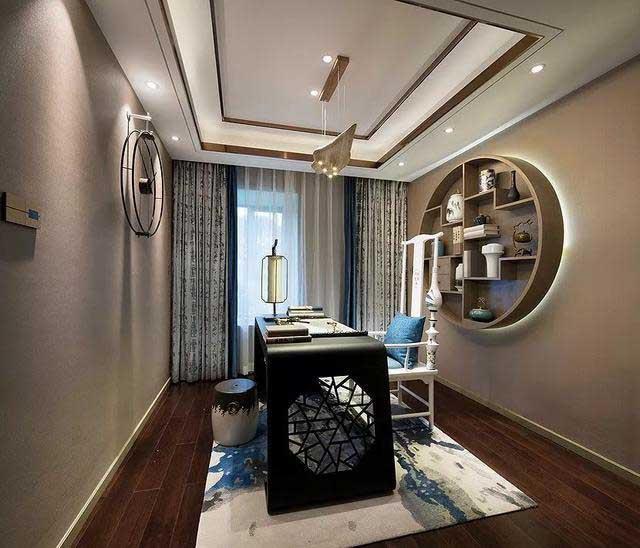 书房面积不大,但是功能齐全。黑色造型独特的书桌,搭配白色靠椅,一黑一白,庄重典雅的氛围中流露出深厚的文化底蕴。
