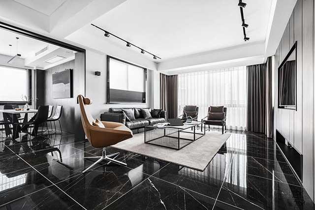 大面积使用黑色,是喜欢出众、敢于尝试的选择。明度极低的它容易让空间灰暗,但如果采光充足,就不是问题。客厅有着东、北两扇窗,充足的光线也让大面积使用黑色成为了可能。