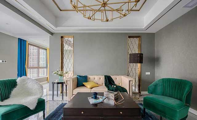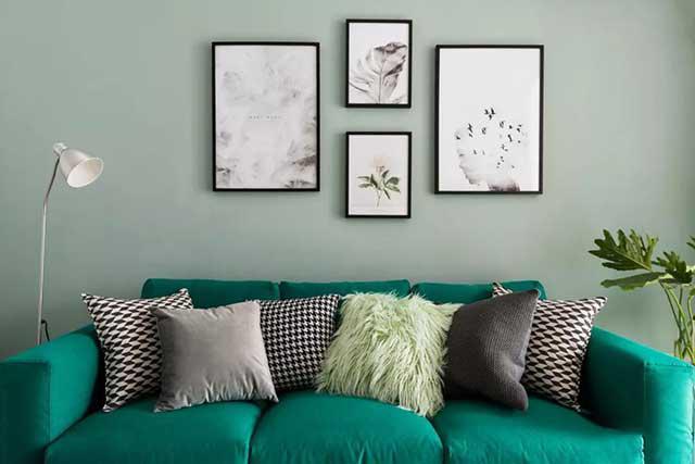 使用墨绿色做沙发,是一个很好的选择,墨绿有另外的一种美,还自带复古韵味。