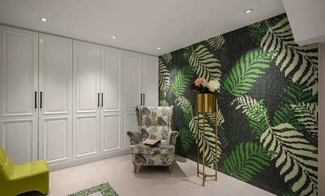 硬包,床头背景可以用绿色;马赛克可以用绿色;拼画可以用绿色,但是这些地方的绿色一定要是深绿或是墨绿才好看哟,因为受材质的影响,过浅的颜色,就没有这种感觉了。