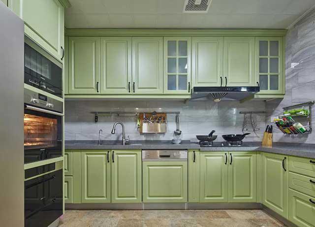 绿色橱柜,一进厨房,全是绿色的,感觉做饭都不会有油烟了,眼睛倍明亮。
