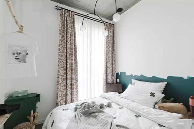 卧室里,床头柜和床头乳胶漆,都可以是绿色的,相互呼应,相互点缀。同时淡点的绿色有助于浴睡眠和休息,卧室选择绿色定是一个不错的选择。