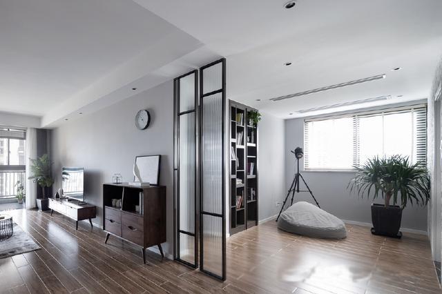客餐厅是一体的,将他们打通以后整个空间都显得通透明亮,而整体的灰色系,搭配深色的木质地板,让整个设计都变韵味十足。