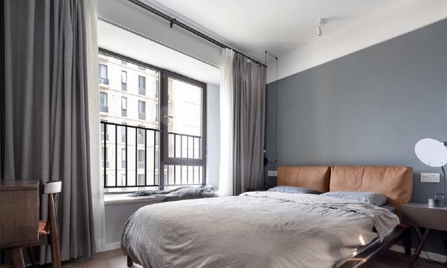 卧室设计的基调和客厅是一致的,大大的飘窗,保证了充足的阳光,在每个早晨,拉开灰色的窗帘,阳光暖暖照进来那一刻世界安好。