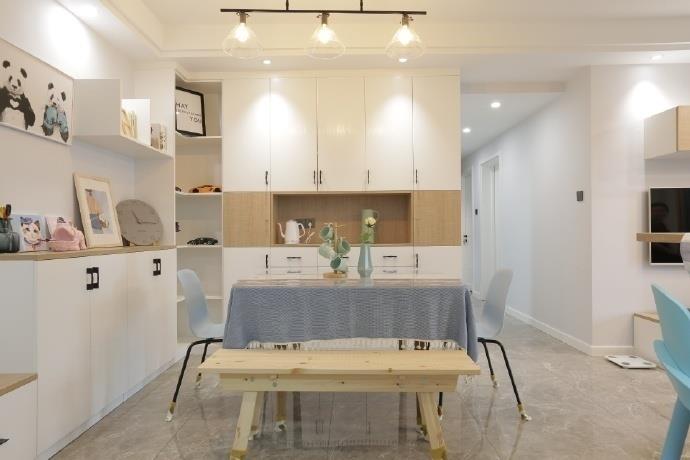 精致的生活并不是只选择最贵的东西,享受最好的服务。真正精致的生活,其实就是少一些点将就,多一点讲究。生活,最重要的是取悦自己。保证充足的光线,一个明亮、整洁的空间是舒适生活的基础。在不够透光的空间里,以大量的白色来保证整个空间的通透。简约的柜子、桌椅设计,风格突出。柔和的光线,衬着整个餐厅的精致。