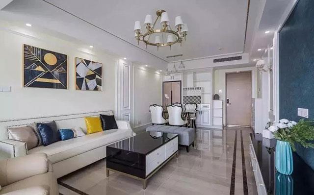 所谓地面隔断,其实也没什么高深的,就是通过在地砖上做边线造型来分割空间。这种设计,不占空间,且美观性好,适合许多情况,也是比较划算的。当然,给地面做造型不是随心所欲,想做就做的,通常需要综合墙面、天花板,以及整体风格,尽量和谐自然不显突兀。