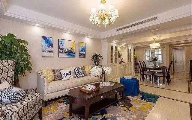 归根结底,我们的诉求就是希望能通过一些技巧让两个空间区分更明显。有不少不占空间、但能在视觉上一眼就区别两个空间的方式。天花隔断就是其一。利用吊顶造型来分隔客餐厅两个区域,在其他区域保持通透一致的格调,这样的设计比较适合一些较为不太宽敞的客餐厅区域,会显得空间更加宽敞而又相互独立。