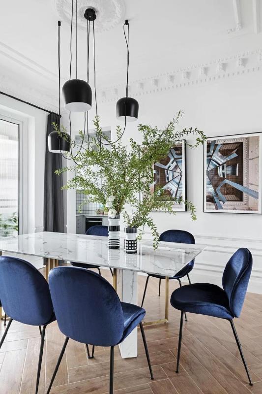 餐厅是如何体现精致的?也许是简约但不简单的大理石桌,也许是造型简单但舒适的椅子,也许是那生机勃勃的绿植。但不可否认的是,没有一蹴而就的精致,都是一点一滴所堆砌的。包括地砖、吊灯、壁画等等,都是不可或缺的因素。
