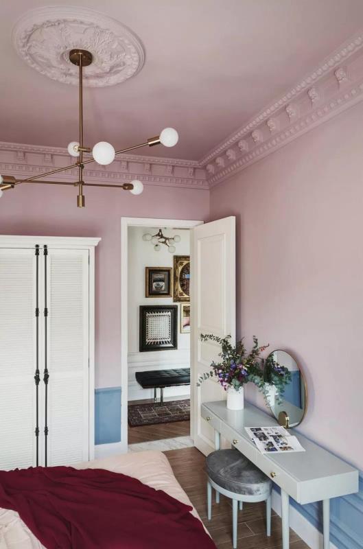 精致总是体现在一些细节里,比如舒适的床上用品,金属拉手、圆形的镜子、造型别致的吊灯。一切都是恰到好处,既是家居必需品,又是一个的装饰品。这是现代装修结合浪漫法式的产物,贴合了人们的生活的同时满足了人们的审美。