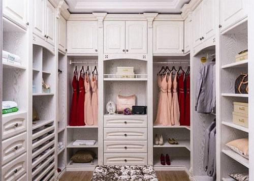 3.昆明“U”型衣柜,一般合适家居面积较大,有衣帽间的居室,用这种造型的衣柜不仅增加了空间的深度和广度,而且储存空间大,所有衣物可以一目了然。