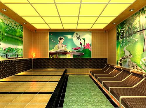 3、设计时可以考虑在走廊上增添装饰画框,通过更换图片,给汗蒸房顾客以新颖之感。