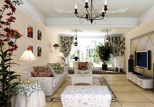 美式乡村风格主要追求享受为最高原则,所以无论是装饰上还是家具上都比较倾向一种贴近自然的质朴。如这款客厅,采用印花布的沙发、抱枕、窗帘,凸显一种清婉惬意的格调。墙面采用纯纸浆质地的壁纸来装饰,更有一种清新自然感。天花板采用精致仿古的雕刻加上仿古的吊灯,在摒弃繁琐奢华的同时,也保留了一种优秀元素的韵味。客厅利用落地窗的开阔感,让居室更加接近自然的氛围,从客厅的整个挑选以及摆设上都透着阳光、青草的自然味道,毫无半点矫情的元素,仿佛都是设计师信手拈来,那样的雅致休闲。