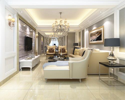 现代风格的家居空间布局以简单为主,删繁就简,以简胜繁是它的风格所在。用简单的元素装饰高格调的家一切都根源于设计师的匠心独运,白色加淡黄色花纹的地板显示出不拘一格的色彩,暖黄色的沙发与地面空间相得益彰,互为一体。灰色的大理石纹理的电视背景墙与沙发背景墙的灰色格调连成一体凸显了圆形的灰色台灯,白色的电视柜与黑色的茶几形成鲜明的对比,简单硬朗的白色吊顶空间在温暖的气氛中显得愈加安静,精致的铁艺银质吊灯在空间内显得格外耀眼,周围空间的白色射灯点缀着空间气氛。
