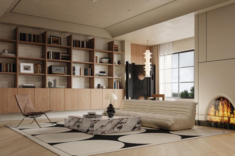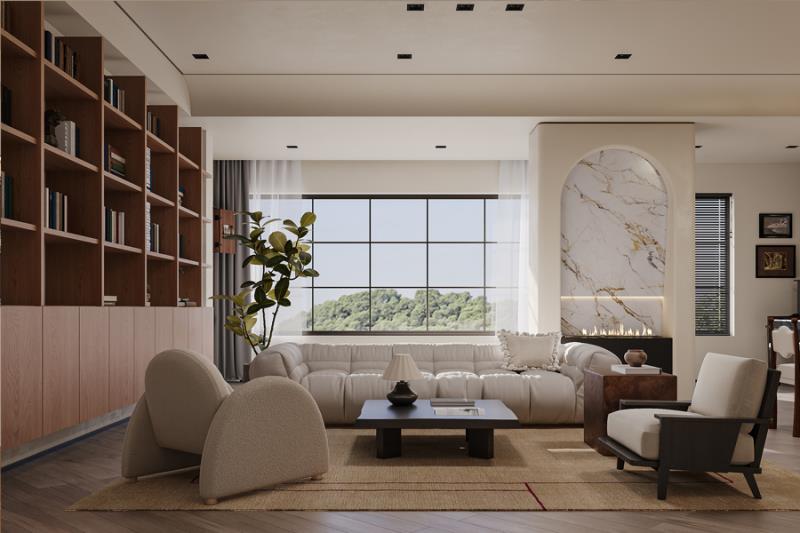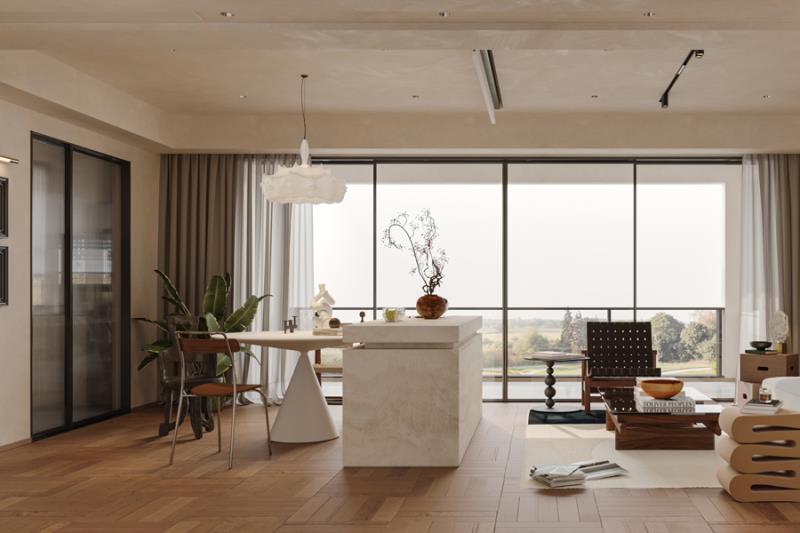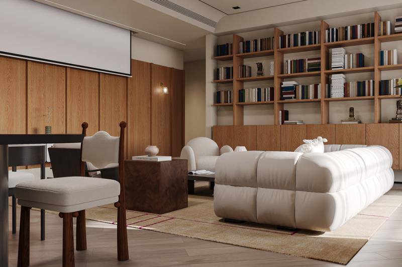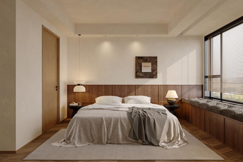 主卧延续了整体的自然调性,木饰面背景墙搭配柔和的床品,连收纳都做了隐形设计,让空间更整洁。施工时我们对木作的拼接缝隙、墙面的乳胶漆工艺反复打磨,最终让设计的细节完美落地。在昆明,这样的家,既装得下一家人的日常,也留得住独处的惬意。