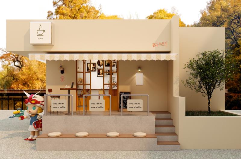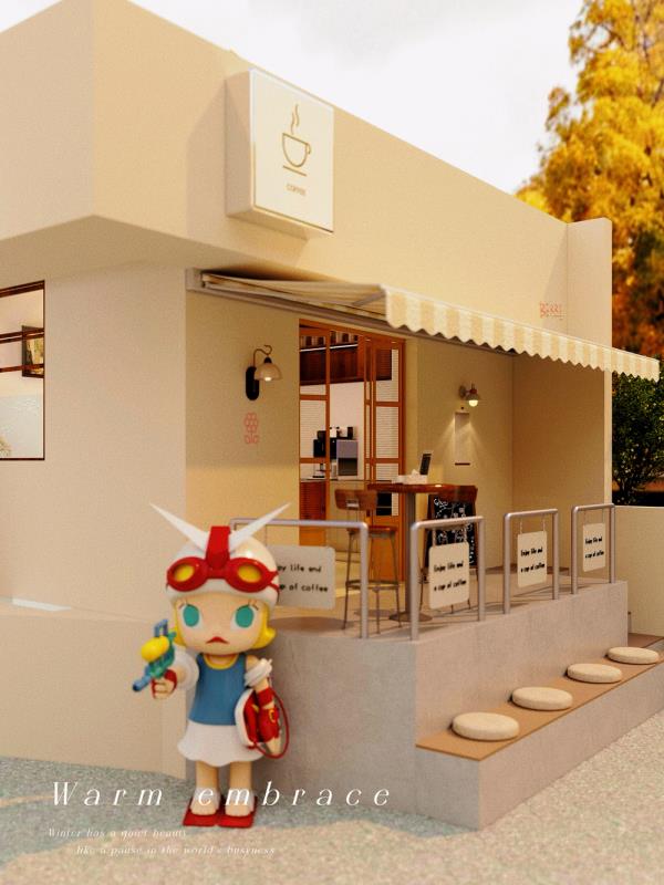门口的潮玩雕塑成为点睛之笔,为静谧的空间注入鲜活趣味,吸引路人驻足打卡。整体设计在质朴与精致间取得平衡,让每一位访客都能在咖啡香气与松弛氛围中,找到属于自己的城市疗愈时刻。