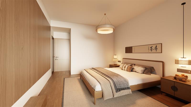 卧室专门贴合老人作息设计,柔和不刺眼的无主灯光,晚上起夜自动感应亮灯,不用抹黑找开关。床边预留充足走动空间,起身、翻身、陪护都很方便,安静私密的环境,老人睡觉更安稳踏实